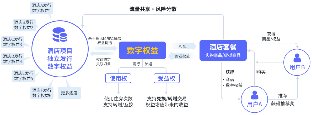 用户购买酒店套餐,赠送数字权益,可自用,还可增值